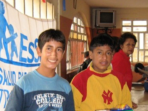 Elizabeth Kelly-Semrau, la esposa del fundador de Porta Mondial, Joachim Semrau, muestra una foto de un grupo de estudiantes riendo alegremente para la cámara. Es difícil creer que hace sólo cinco años, uno de ellos – Elmer Machuca Chacón– seguía limpiando parabrisas de los coches en la calle para aumentar los ingresos de su familia.