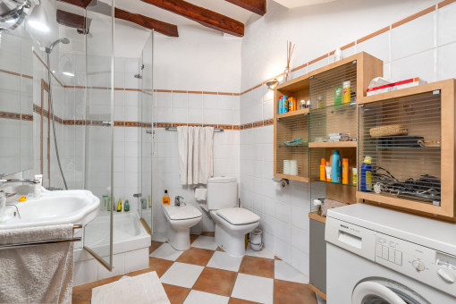 Como punto culminante de la propiedad, le espera una gran terraza con unas preciosas vistas. En combinación con las vigas de madera del techo y los originales suelos de terracota, el piso ha preservado su carácter original y tiene un alto valor de bienestar.