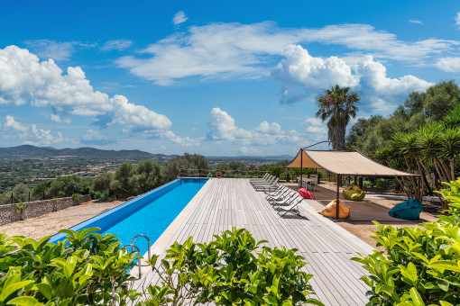 Esta finca construida hace 100 años y renovada en 2004 destaca por su terreno de 750.000 metros cuadrados, el cual ofrece mucha privacidad, tranquilidad idílica y una vista espectacular hasta la bahía de Alcúdia y la Sierra de Tramuntana.