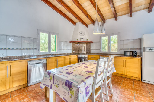 En la planta baja, la entrada conduce directamente al área de comedor, que se abre hacia una acogedora sala de estar con chimenea, formando un amplio espacio combinado de salón y comedor. La cocina separada tiene acceso directo a una soleada terraza con zona de barbacoa. En este nivel también se encuentran varios porches cubiertos y trasteros.