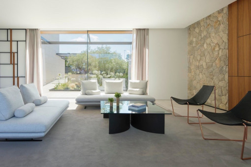 Chalet de lujo en primera linea en las afueras de Palma. Esta espectacular propiedad construido en el año 2020 destaca por su alta calidad y la tecnología más avanzada.