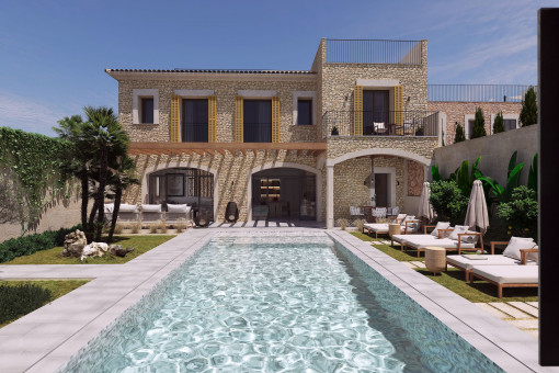 Este lujoso adosado se está construyendo en una ubicación absolutamente privilegiada, justo en el corazón de Ses Salines. Los elementos arquitectónicos mallorquines se combinan armoniosamente con el diseño moderno en este proyecto para las más altas exigencias. El concepto ha sido completamente pensado con gran atención al detalle. El espacio y la luz son los protagonistas. El objetivo es crear estancias luminosas, amplias y abiertas. El adosado impresiona por sus vistas panorámicas desde la azotea sobre los tejados de Ses Salines y la iglesia.